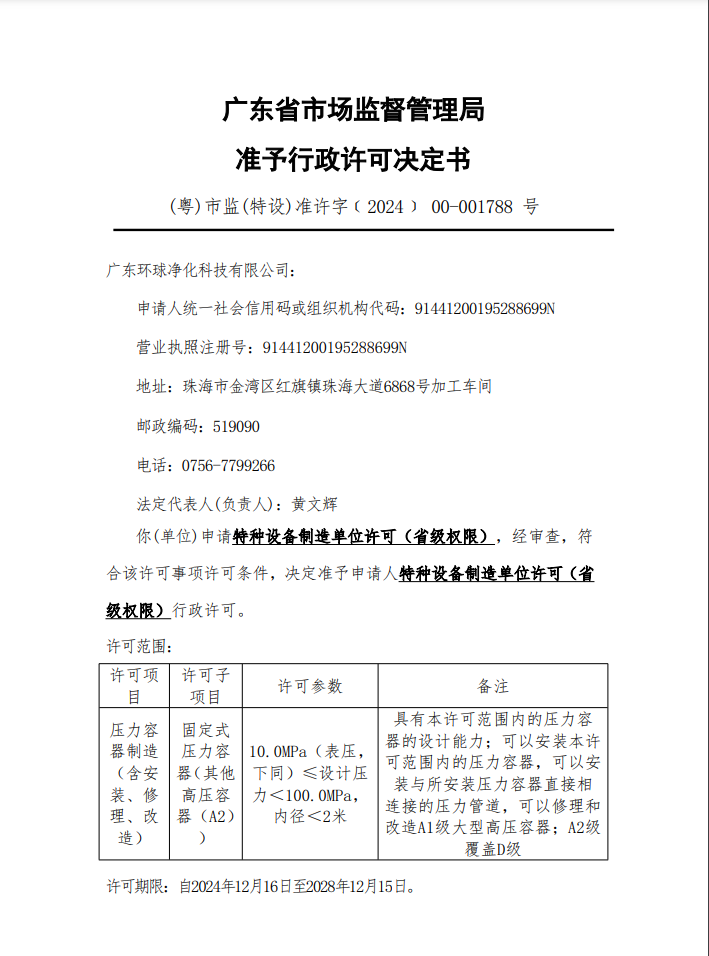 种设备生产许可证制造资质。这些资质的获得,不仅证明了我们在相关领域的专业能力,